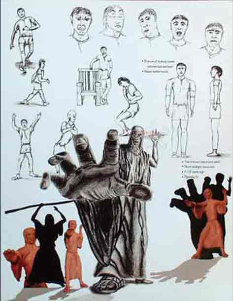Character Model Sheet with Clay Figures / Pencil On Paper, Polymer Clay