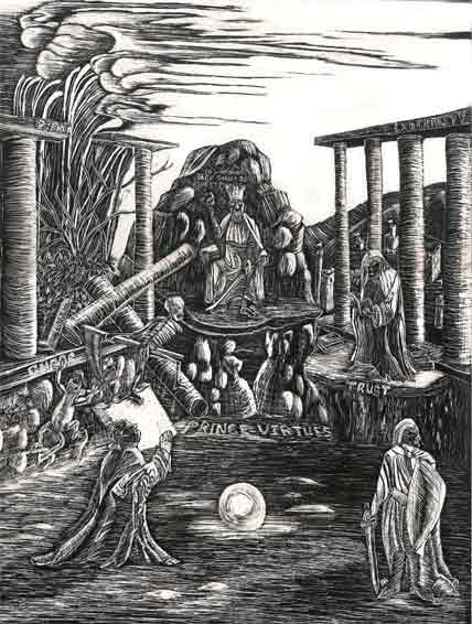 Image Depicting Machiavelli's Princely Virtues / Scratchboard